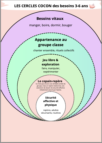 • Des outils visuels et structurants, comme les Cercles des besoins et le Kit Émotions & Besoins, qui permettent de rendre visibles les besoins et les ressentis, offrir des repères concrets au quotidien et soutenir l’autorégulation.