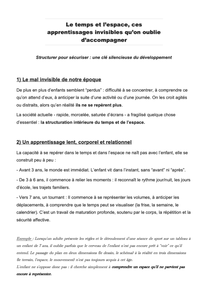 Le temps et l’espace, ces apprentissages invisibles qu’on oublie d’accompagner