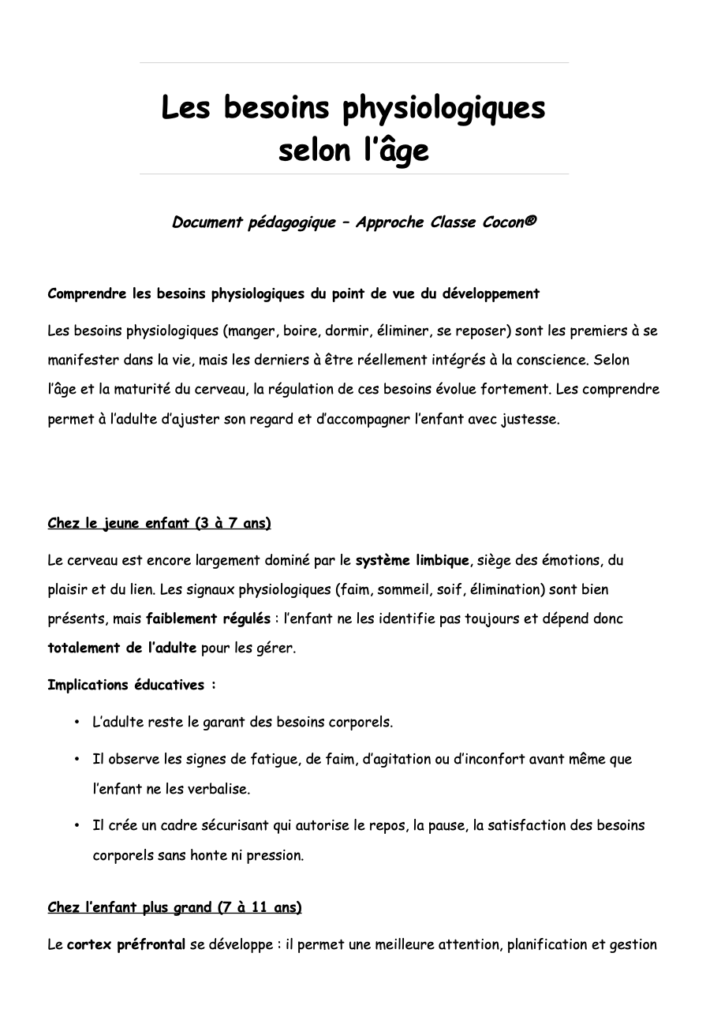 Manger, boire, dormir, se reposer… Ces besoins semblent simples, mais ils sont souvent relégués au second plan, quel que soit l’âge (voir Cercles Cocon des Besoins©).